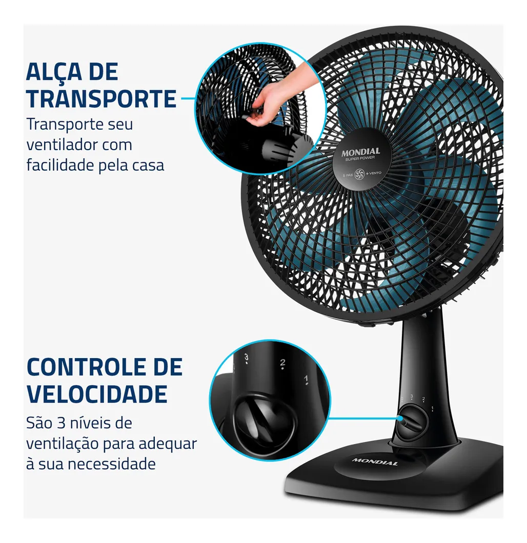 A linha de Ventiladores Super Power possui 30cm de diâmetro e 6 Pás. O design, aliado à
